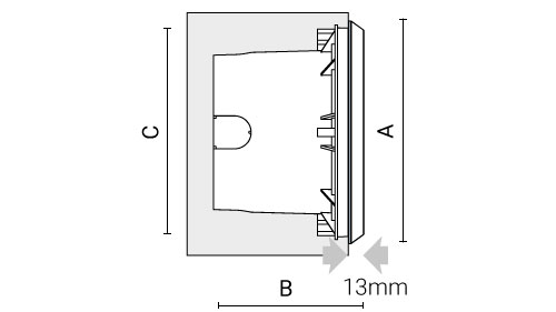 asimmetrica Imax=58° | 11W | 175lm | 4000K | 80 | ON/OFF | 190mm | 123mm | 183mm |