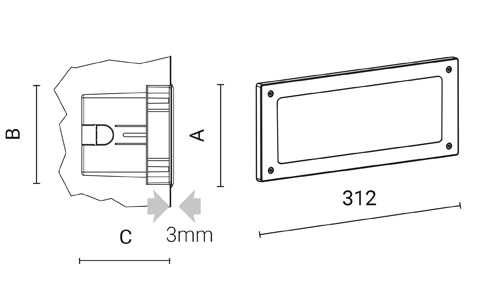 | Codice | Ottica | Watt | Lumen | CCT | CRI | Controllo | A | B | C | |