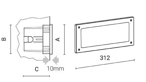 Apparecchio da incasso a parete per l'illuminazione di esterni, progettato con particolare attenzione al massimo comfort visivo. Il suo design semplice e pulito dalla forma rettangolare e la varietà di ottiche garantiscono un'illuminazione funzionale e una presenza minimale, che si adatta a svariati contesti architettonici.